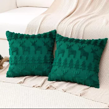 Christmas Rabbit Fur Quilted Embroidered Pillow Cover – Cozy Holiday Cushion for Sofa & Bed