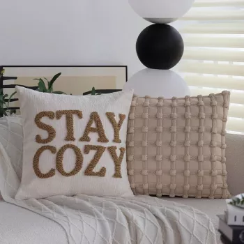 Minimalist Beige Embroidered Cushion Cover 18″x18″ Soft Decorative Pillowcase
