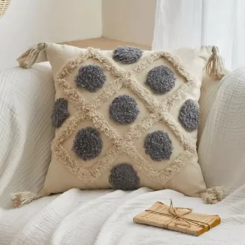 Boho Geometric Tufted Cushion Cover with Tassels – Decorative Throw Pillowcase