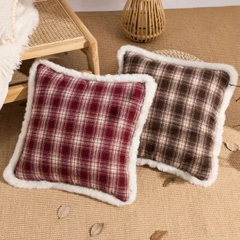 Christmas Plaid Throw Pillow Cover – Retro Holiday Cushion for Sofa & Bed, 18x18in