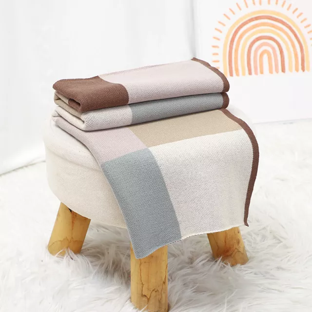 This baby blanket combines comfort, style, and practicality in one charming design. The knitted cotton construction offers a lightweight yet warm feel, ensuring your baby stays snug without overheating. Its fashionable plaid pattern adds a timeless touch, making it an elegant addition to any nursery or stroller setup.